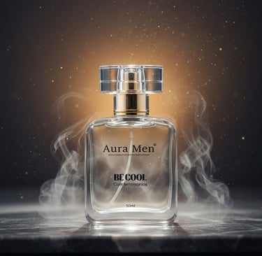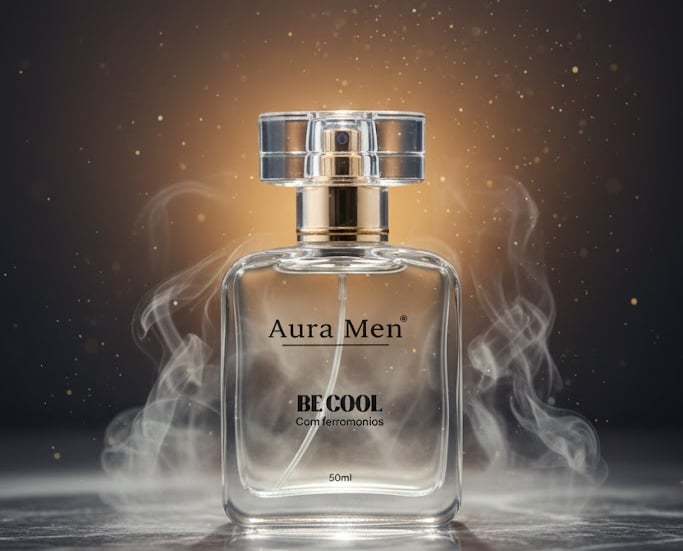 Um perfume precisa agradar. Se a base não for sofisticada, ninguém chegará perto o suficiente para sentir os feromônios. Por isso, Aura Men abre com notas de bergamota e pimenta-preta, coração de cedro e vetiver, e fundo de âmbar e musk. O feromônio é o segredo. O perfume é o convite.